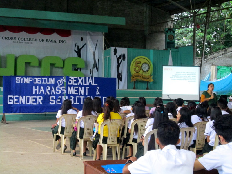Ang symposium “Sexual Harassment and Gender Sensitivity” gipahigayon sa Holy Cross College of Sasa Inc. niadtong Nobyembre 17,2016 sa hapon sa school gymnasium.