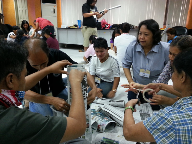 Ready for stormy days. The Artes de San Vicente prepare themselves for challenges ahead as they await for another set of sewing equipment from a government agency. Findings of the SWOT analysis include becoming more productive by managing time wisely every single day. President Lea Bernaldez coaches her team to build a strong tower, founded in communication and in respect. (JN Magdaherin)