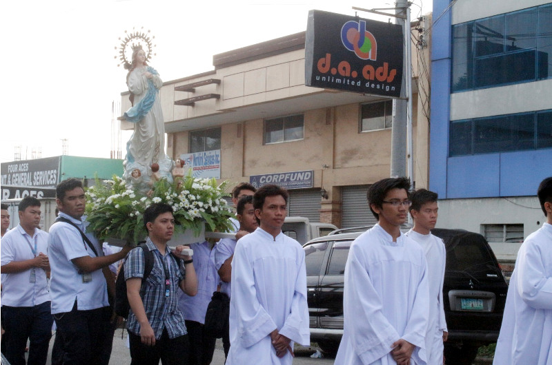 Ang prusisyon sa imahe sa Birheng Maria gisalmutan sa magtutudlo, administrators ug estudyante sa University of the Immaculate Conception.