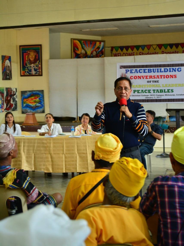 Presidential peace adviser Jesus G. Dureza assured the indigenous groups of their representative in the new and expanded Bangsamoro Transition Commission (BTC), which will draft the enabling law for the implementation of all Bangsamoro peace deals and other pertinent measures including the Indigenous Peoples Rights Act of 1997, during an IP peace table conversation on January 3, in Midsayap, North Cotabato.This meeting with the IP leaders is part of the continuing consultation process for the “bigger peace tables” to discuss their concerns and participation in the peace process.