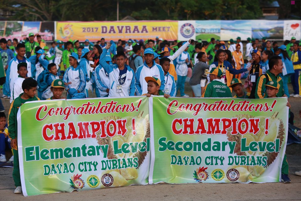 The Davao City Durians have defended their championship title as they bagged 126 gold, 105 silver and 76 bronze medals at the DAVRAA 2017 Meet in Davao Oriental, just recently. (Sr. Marietta Alo, OND)