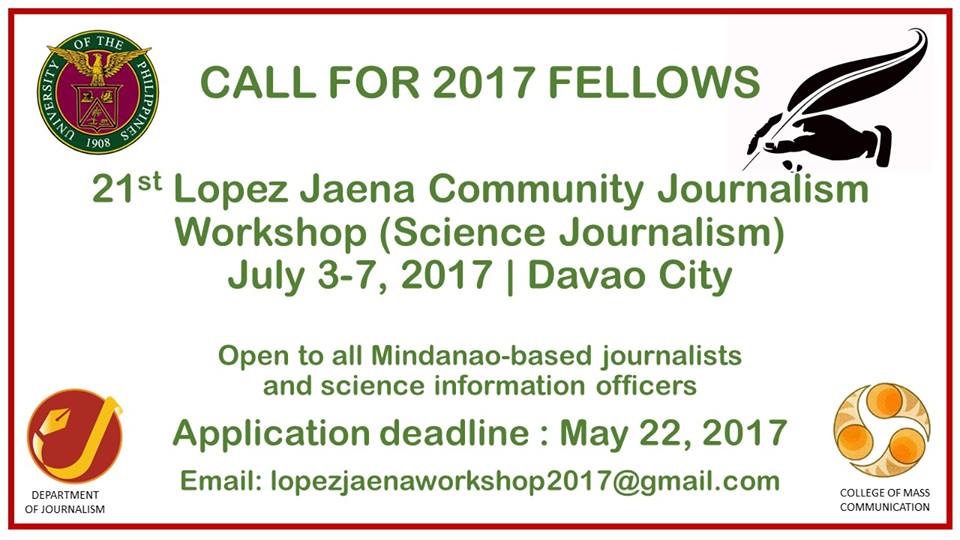 I have been blessed to join the 20th Graciano Lopez Jaena Community Journalism Workshop on Science Journalism which was organized by the University of the Philippines College of Mass Communication Journalism Department from November 27 to December 2, 2016.