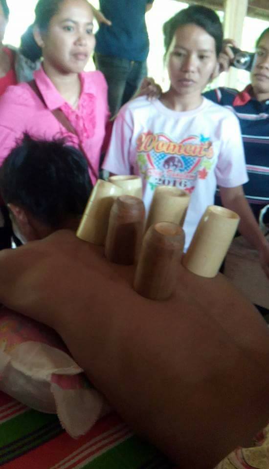 Usa ka PSA niboluntaryo alang sa gihimong demonstrasyon sa acupressure training.