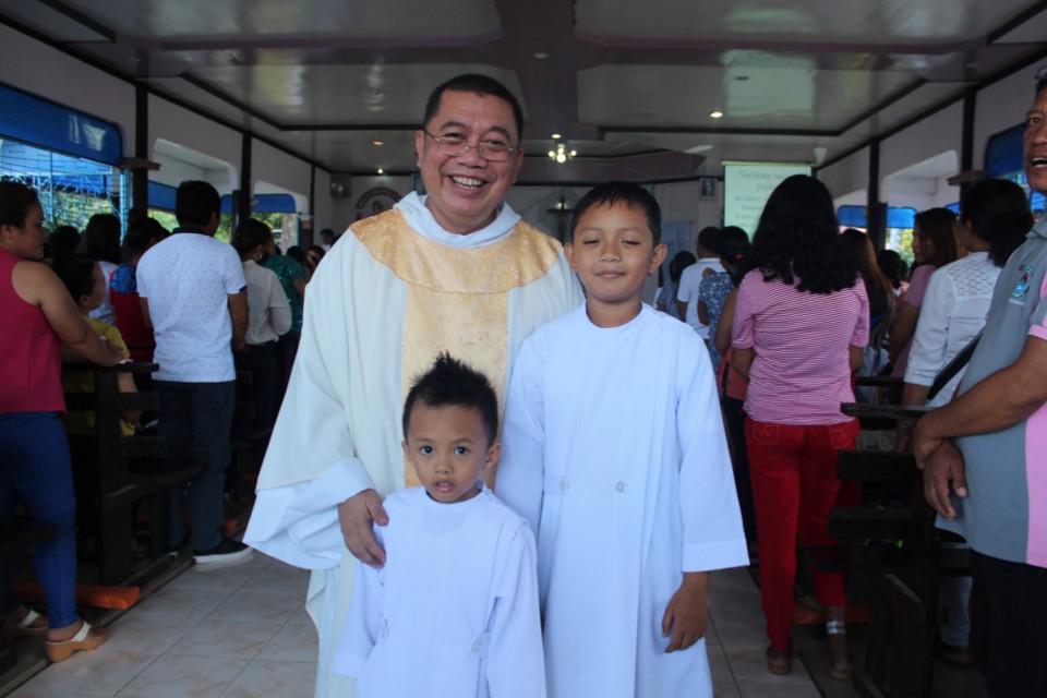 Gikahimut-an ni Rev. Fr. Ronald Lunas ang duha ka gagmayng altar servers nga 4 ka anyos ug 5 ka anyos.